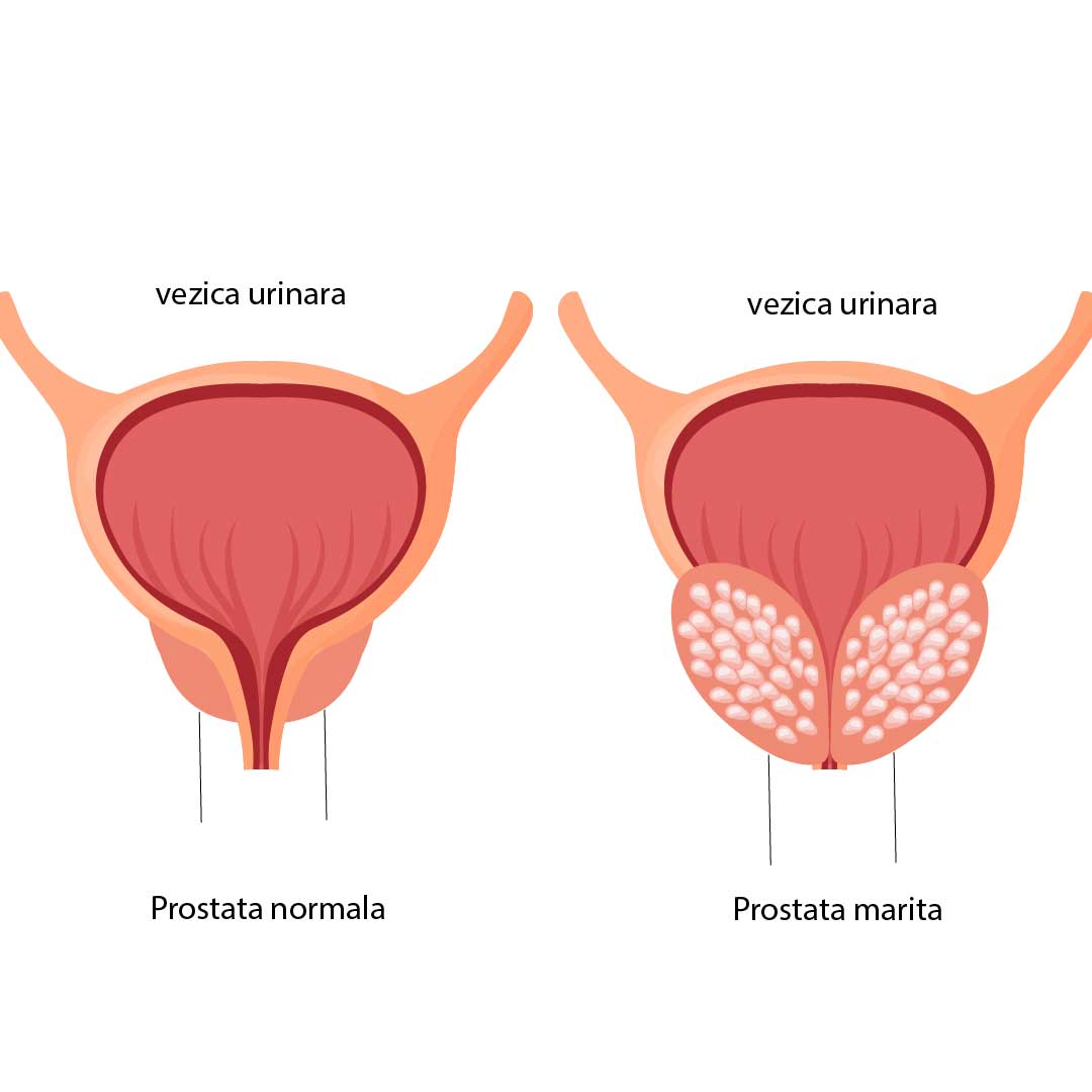Cresterea in volum a prostatei (aparitia adenomului de prostata) realizeaza comprimarea in timp a lumenului uretral, determinand modificari atat ale functiei urinare, cat si a celei reproducatoare. Pentru golirea corespunzatoare a vezicii urinare in cazul in care eliminarea urinei este impiedicata, muschii vezicii si cei abdominali cauta sa depaseasca acest obstacol printr-un efort suplimentar, in asa fel incat la inceput fluxul si debitul urinar sa nu sufere modificari. Ulterior, chiar daca aceasta musculatura se contracta mai puternic, acest mecanism este depasit, instalandu-se asa numita “vezica de lupta”, cu pereti grosi, anfractuosi. Odata depasit mecanismul de golire al vezicii urinare apare rezidiul vezical, acesta fiind responsabil de complicatiile adenomului de prostata : infectia urinara, litiaza, hematuria, incontinenta, retentia completa de urina si insuficienta renala progresiva.